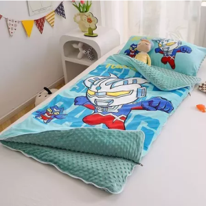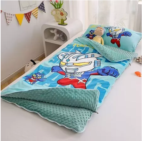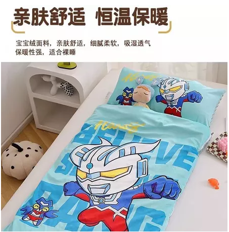 冬季加厚儿童睡袋奥特曼豆豆绒婴儿被子两用被幼儿园午睡被防风被