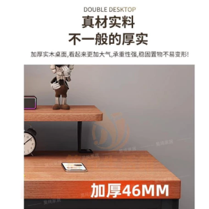 卧室簡易長辦公桌 實木電腦桌 電腦桌帶增高架