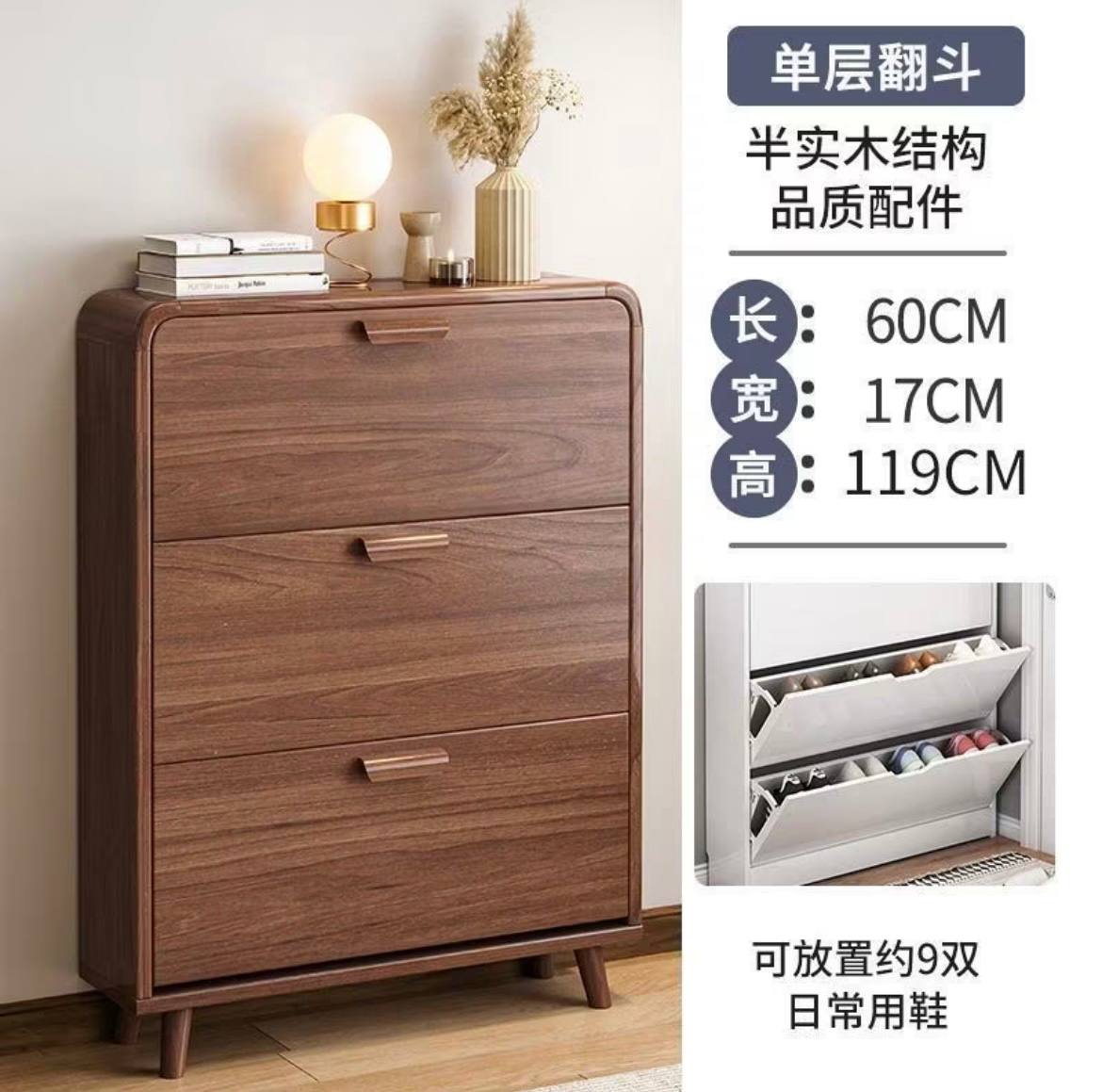 復古實木邊窄櫃 數量