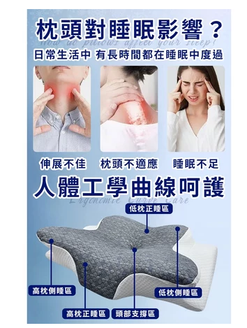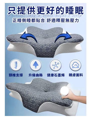 慢回彈超導石墨烯蝶型釋壓記憶枕 高低枕 記憶枕 能量枕 石墨烯枕