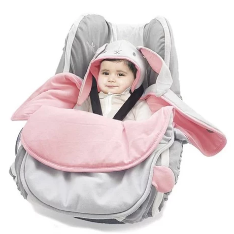 輕巧嬰兒抱袋包巾 – 可愛動物系列雙面款 小兔粉